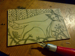 Here we have the limited edition lino cut christmas card, I have just listed them in my etsy shop now if you fancy taking a closer peep. ( My etsy shop is in the side bar )